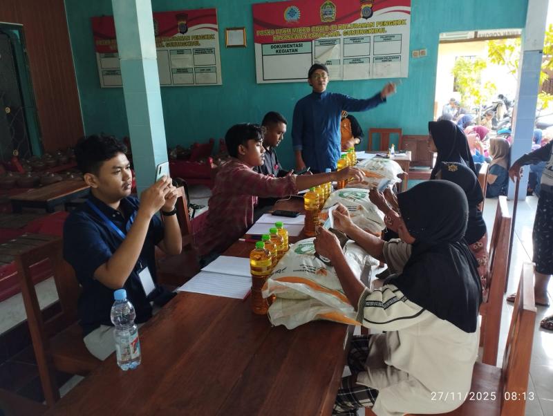 PENGKOK – bertempat di Balai Kalurahan, Pemerintah Kalurahan Pengkok, Kapanewon Patuk, Kabupaten Gunungkidul menyalurkan Bantuan Pangan yang berupa Beras dan Minyak Goreng untuk alokasi Bulan Oktober-November Tahun 2025 dari Cadangan Pangan Pemerintah (CPP) untuk di Kalurahan Pengkok disalurkan kepada 330 Keluarga Penerima Manfaat (KPM) untuk kali ini ada pengurangan dalam jumlah penerimaan, dari yang dulu 470 sekarang menjadi 330 Keluarga Penerima Manfaat (KPM), bantuan Beras dan Minyak Goreng disalurkan pada Hari Kamis (27/11/2025). Bantuan berupa beras 20 kilogram dan Minyak Goreng 4 liter per KPM, ini merupakan program dari Badan Pangan Nasional yang bekerja sama dengan Perum Bulog, sebagai upaya menjaga ketahanan pangan dan menekan dampak inflasi di tengah masyarakat.